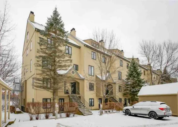 Die 4-Zimmer- Luxury Retreat liegt im Bezirk Mont Tremblant Village von Mont-Tremblant und verfügt über eine sonnige Terrasse mit Blick auf die Berge.
